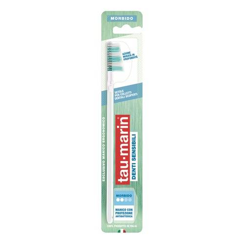 tau-marin SENSITIVE DENTI Spazzolino per problemi di denti sensibili e colletti dentali scoperti. La sensibilità dentale e i colletti dentali scoperti sono spesso un ostacolo a una perfetta igiene orale. Lo spazzolino Sensitive Denti, garantisce una pulizia efficace, evitando sensazioni dolorose durante lo spazzolamento.