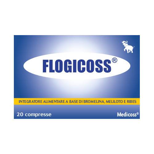 Integratore alimentare a base di bromelina, meliloto officinalis e ribes nigrum. I componenti di Flogicoss possono risultare utili per il trofismo del microcircolo, per il sistema respiratorio ed articolare. La bromelina contenuta in Flogicoss è un enzima proteolitico estratto dal gambo e frutto dell'ananas comosus, di cui sono note le proprietà antinfiammatorie e anti-edema utilizzata da tempo nel trattamento degli stati infiammatori, specie se associati alla presenza di edema. La bromelina è un utile supplemento alimentare in quelle situazioni caratterizzate da iperproduzione di sostanze flogogene a livello del distretto respiratorio, muscolo scheletrico e altri.
